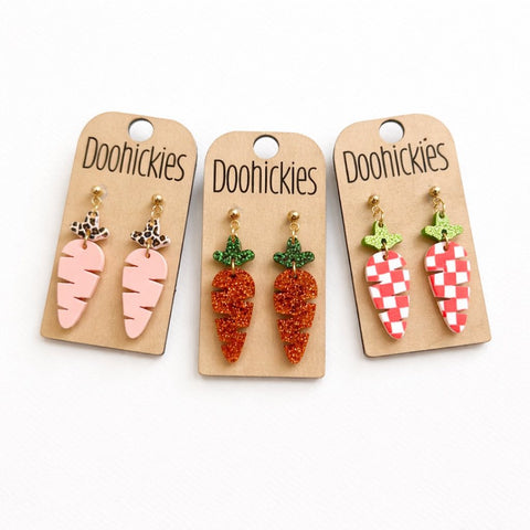 Hop into the season with our Carrot Dangle Collection—the perfect Easter accessory that brings festive flair to any outfit. Choose from three delightful styles: soft Pastel hues for a gentle spring vibe, vibrant Traditional colors for classic Easter charm, or fun Checkered patterns for a playful twist. These dangling earrings celebrate the holiday with whimsy and style, making them an egg-stra special addition to your jewelry box. Whether you're dressing up for brunch or adding a touch of seasonal spirit to your everyday look, these carrot-inspired dangles deliver personality and cheer.