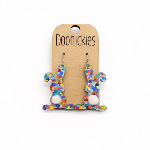 Hop into the season with our adorable Floppy Ear Bunny Collection Easter Earrings! These fun accessories feature a floppy bunny ear with a soft, fuzzy tail detail that brings extra charm to your look. Choose between two delightful print options—vibrant rainbow dots for a cheerful pop of color, or sweet pastel houndstooth for a more subtle, sophisticated vibe. Perfect for Easter celebrations, spring festivities, or anyone who loves a touch of playful personality. Make a statement with ears that are impossible to ignore!