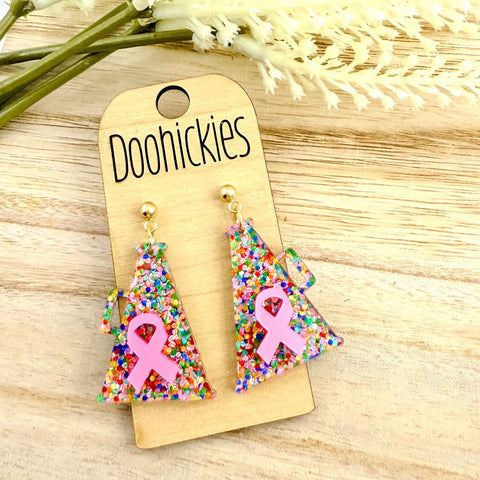 Pink Out Daisy Glitter Ribbon Megaphone Earring Collection - Breast Cancer Awareness Earrings