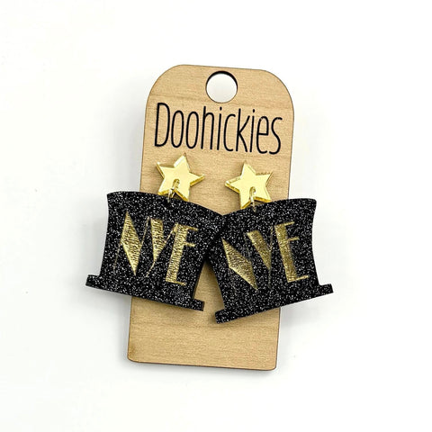 Get ready to party with these 1.25" NYE Party Hat Earrings! Made of durable acrylic, these festive earrings are perfect for your New Year's Eve celebration. Let your ears join in on the fun with these quirky and playful accessories.