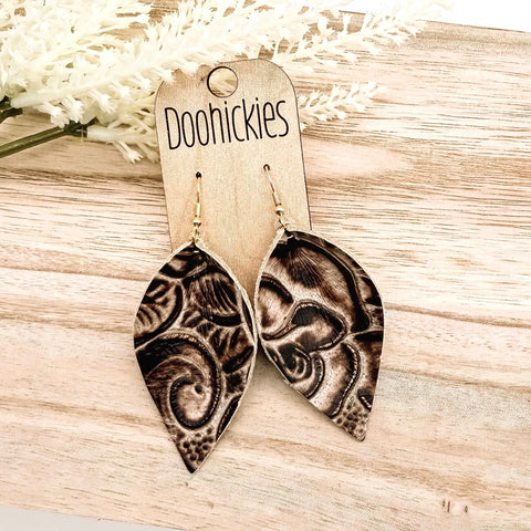 Add a touch of western charm to your outfit with these playful embossed leather petal earrings. Their unique petal shape and textured finish bring a fun, stylish flair that's perfect for everyday wear or your next country-inspired adventure. Lightweight and comfortable, they're sure to become your go-to accessory when you want to stand out with a bit of rustic elegance.